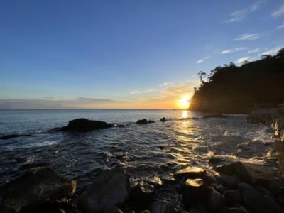 泊まったしょうとく丸の真前にある海岸です。ビーチでは無く岩場の海岸ですね。朝早い時間に行ったら朝陽が綺麗でした。釣りやマリンアクティビティをしてる人がちらほらいましたよ。