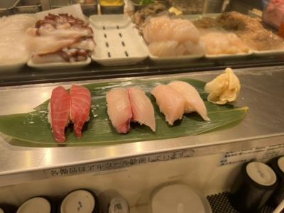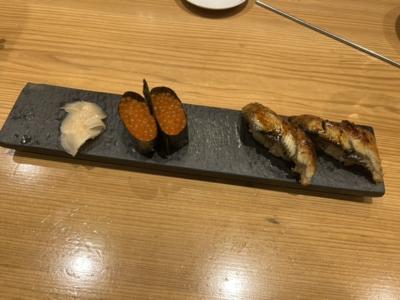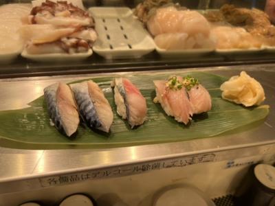 マグロ、メカジキ、カンパチ、そしてシメサバ、アジをそれぞれ2貫ずつ、生サバは高いので1貫で!美味しかった。- 旅行時期