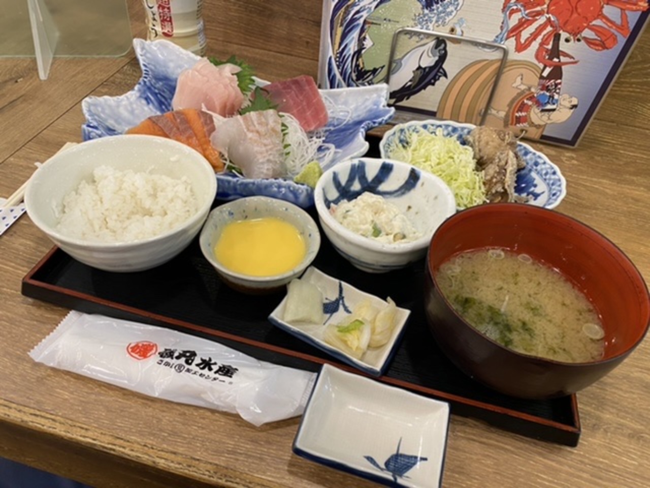 平日にランチ飲みで入りました。たのんだのはランチメニューにお刺身盛り合わせ定食990円!刺身4種にまぐろ竜田揚げ、小鉢が付いてこの値段です。生ビールと磯丸純米酒と!- 旅行時期