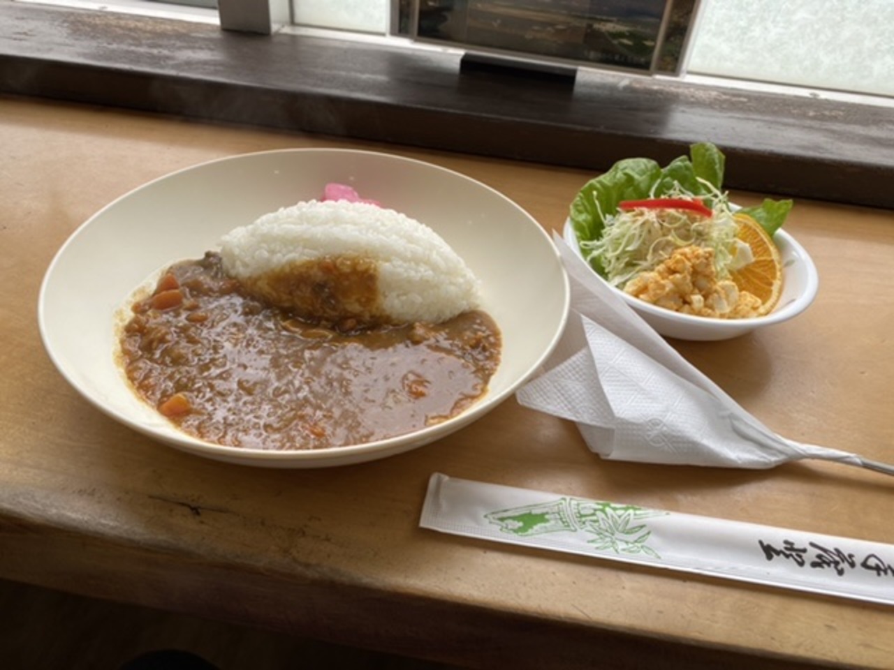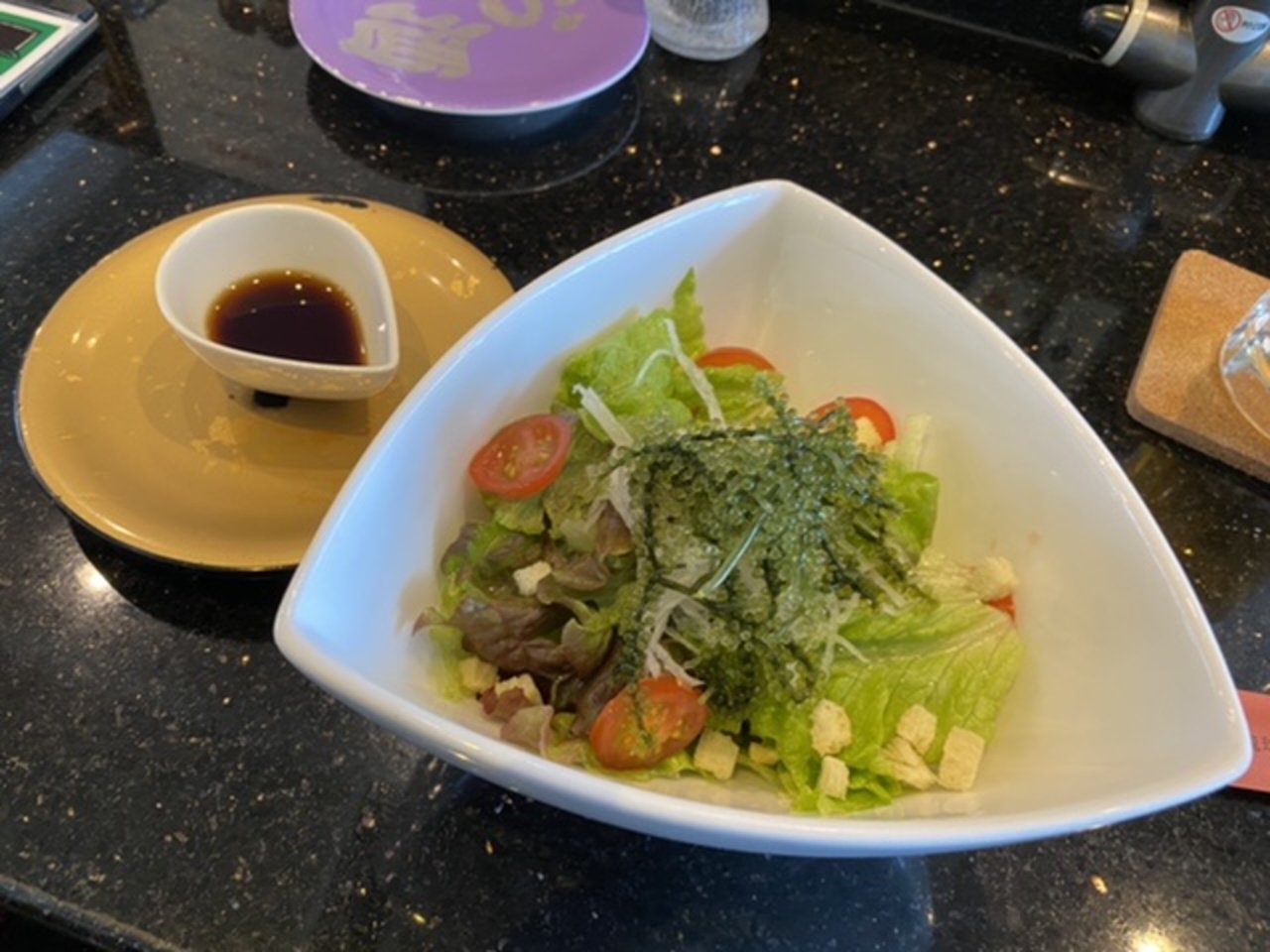 サラダにバンチャン3種、キンパが付いてきます。美味しいですね。- 旅行時期