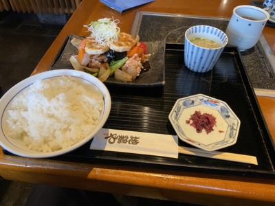 食べたのは鶏と野菜の黒酢あん定食950円!野菜もたくさんで美味しかったです。- 旅行時期