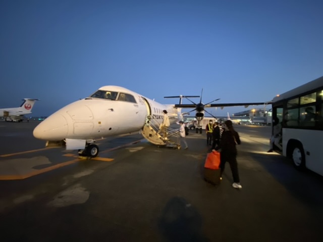 定刻発着で1時間25分。ボンバルディアのDHC8-Q400CCのプロペラ機でした。- 旅行時期