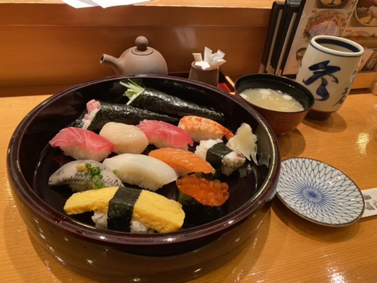 食べたのは本日のにぎり1.5人前1,200円!にぎり寿司10貫に手巻き寿司が2つです。ボリュームありますよ。- 旅行時期