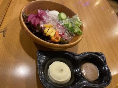 焼鳥や鶏唐揚げ、生野菜、、、飲み放題で生ビールに赤ワインでしたよ。- 旅行時期
