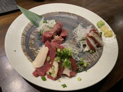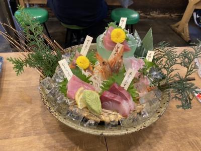 刺し盛りを生ビール、日本酒、芋焼酎で!