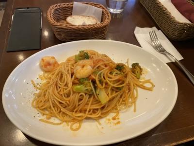食べたのはパスタランチ!海老とブロッコリーのトマトクリームスパゲッティを選びました。サラダと食後にジェラートかエスプレッソが付きますよ。- 旅行時期