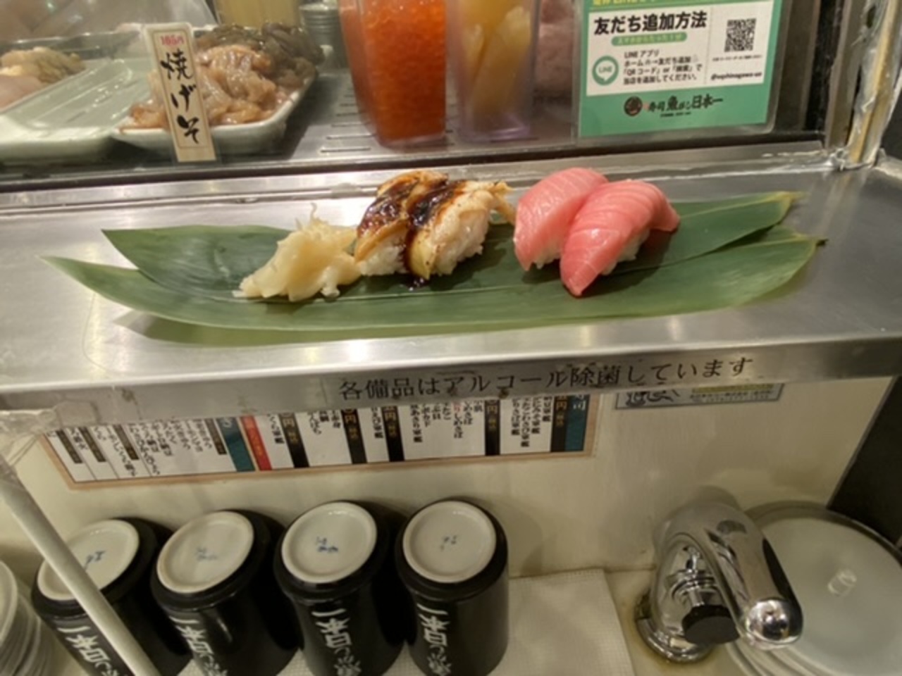 食べたのは5貫セット(まぐろ、サーモン、鯛、げそ、ネギトロ軍艦)にまぐろ2貫、穴子2貫!朝から寿司はイイですね。- 旅行時期