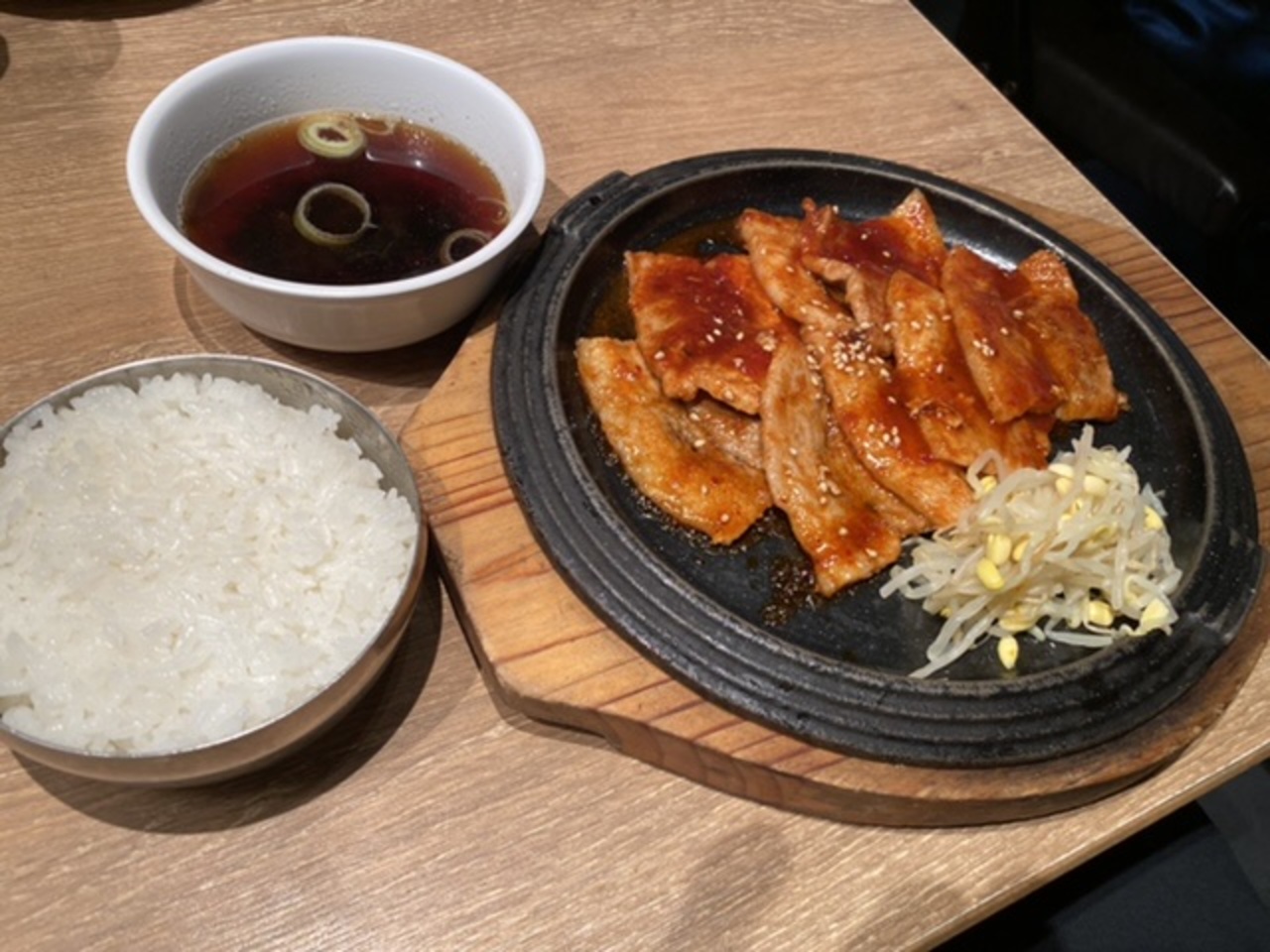 食べたのは味噌だれサムギョプサル!サラダとバンチャンが付いてご飯はおかわり自由です。
