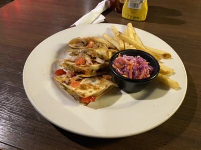 食べたのはプルドポークケサディア!メキシコ料理ですね。