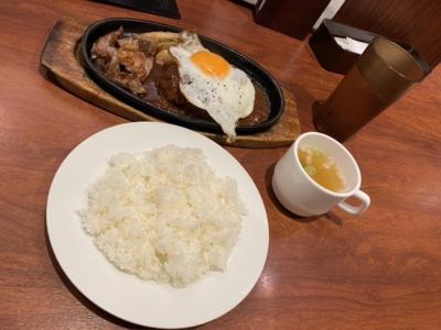 食べたのはハンバーグ&サイコロステーキ税込980円に目玉焼きトッピング!
