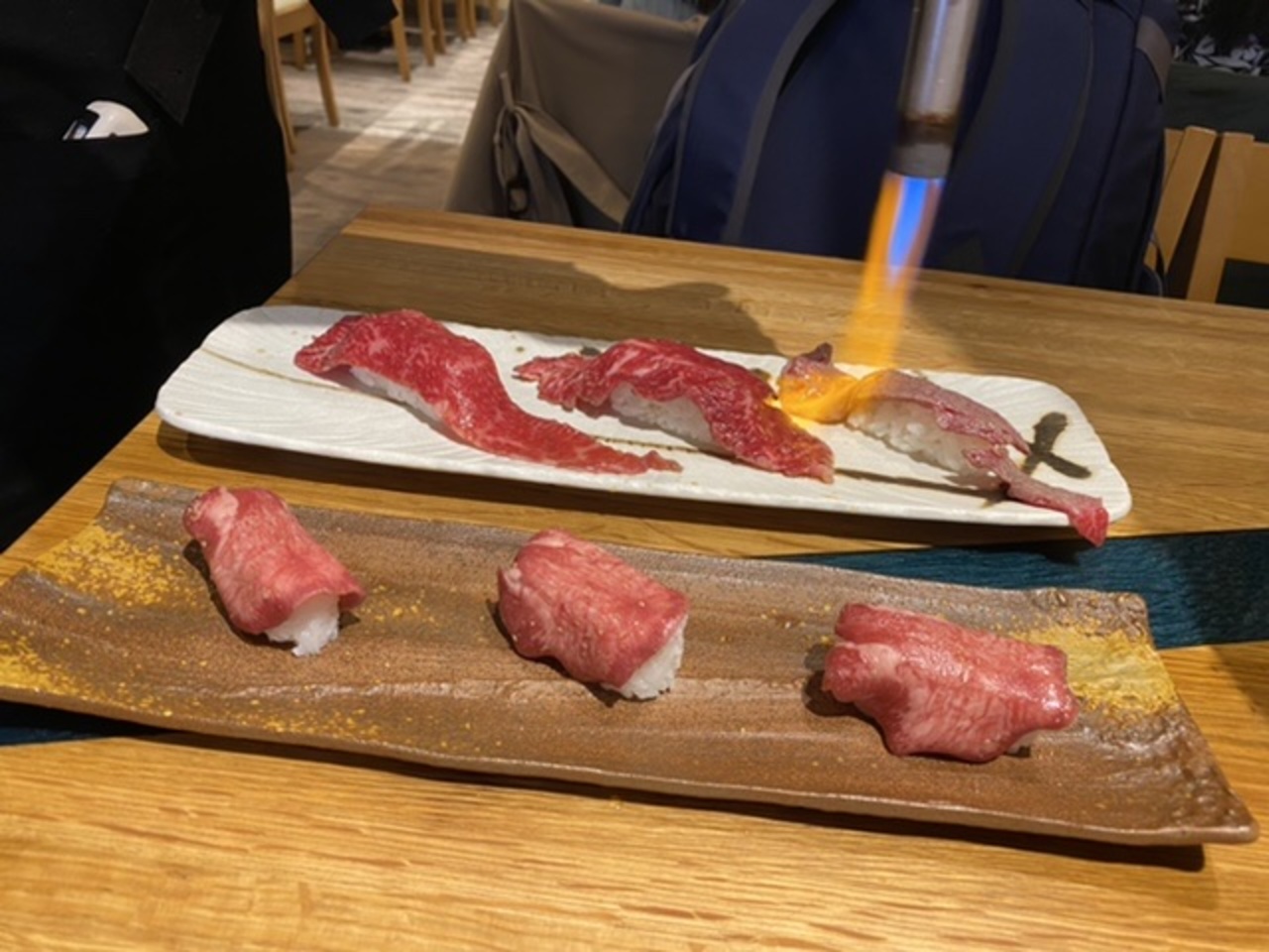 先ずは生ビール!そして石垣牛カルビに石垣牛上カルビ!次は泡盛で、牛タン炙り握り三貫に石垣牛炙り握り三貫!石垣牛三昧、美味かった(^^)- 旅行時期