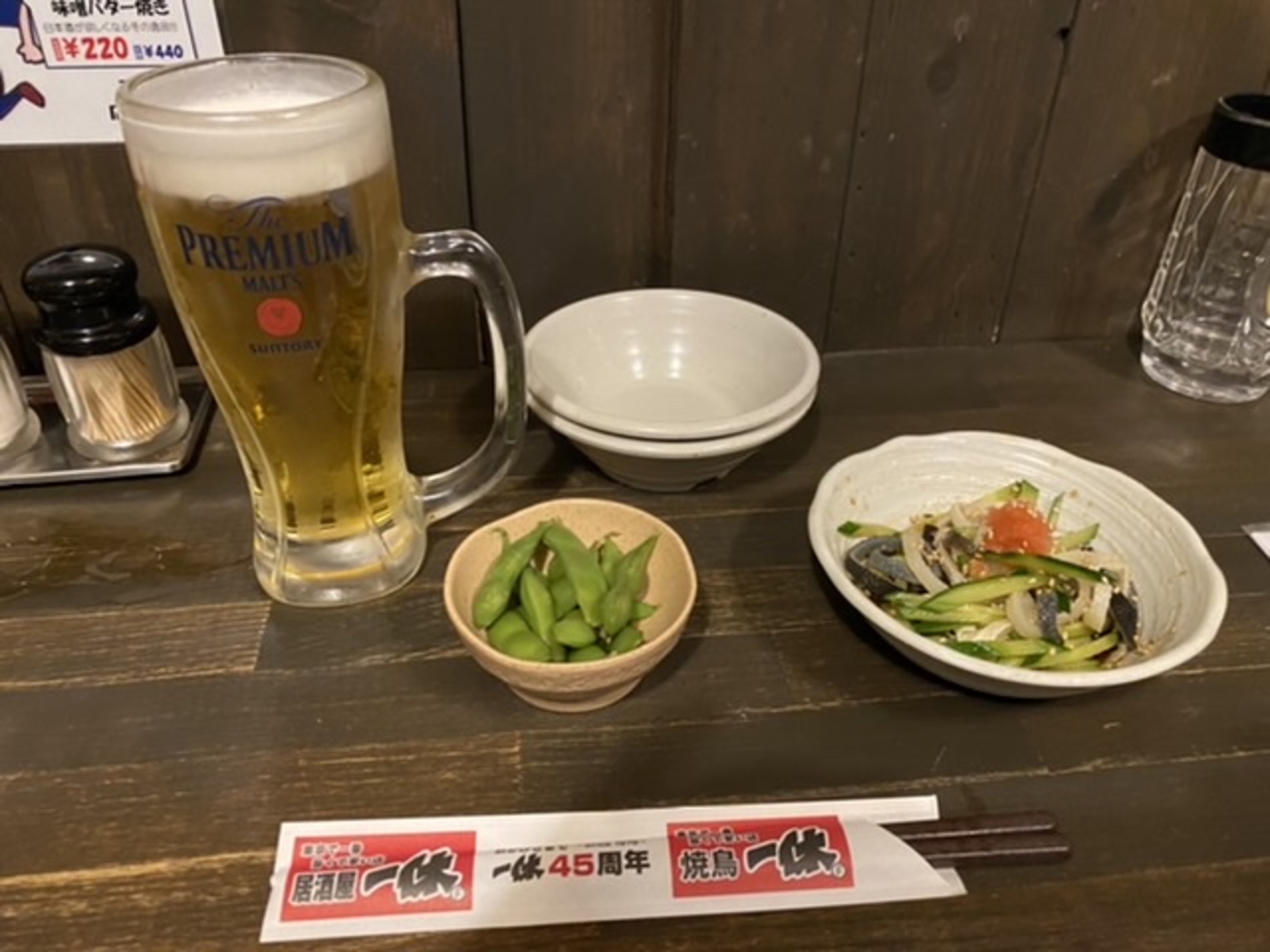 アプリ会員に500円で入ると月間の飲み物とつまみが半額になるとのことで入りました。生ビールは半額以下の190円に。