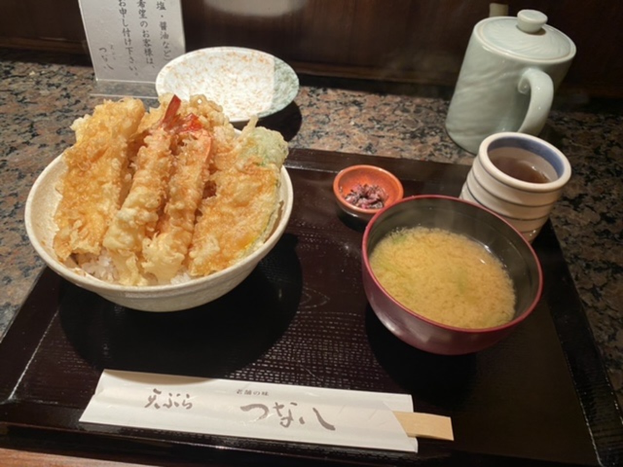 食べたのはいかえび天丼1,230円!いか2枚、海老2本、野菜2品、玉葱と干し海老のかき揚げがのっています。ランチ天重よりもこっちの方が好き!- 旅行時期