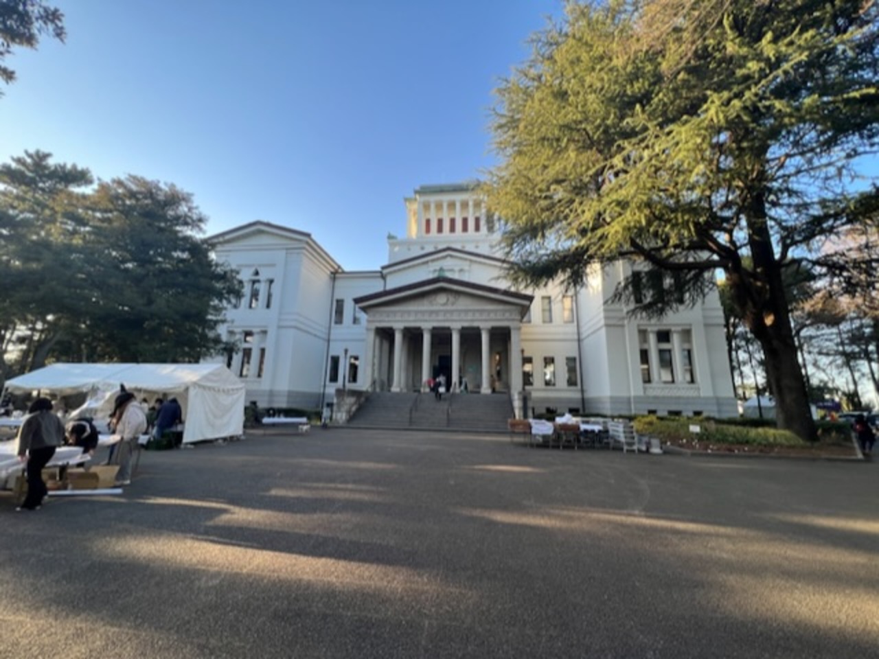 東急東横線大倉山駅改札を出て右に、線路沿いの記念館坂を登って行くとあります。梅園の観梅会をやっていたので梅園に行った後に寄りました。観梅会最終日の夕方だったので何かイベントがあったのでしょう!?いろいろ片付けてました。古代ギリシャ以前の建築様式の白亜の洋館です。