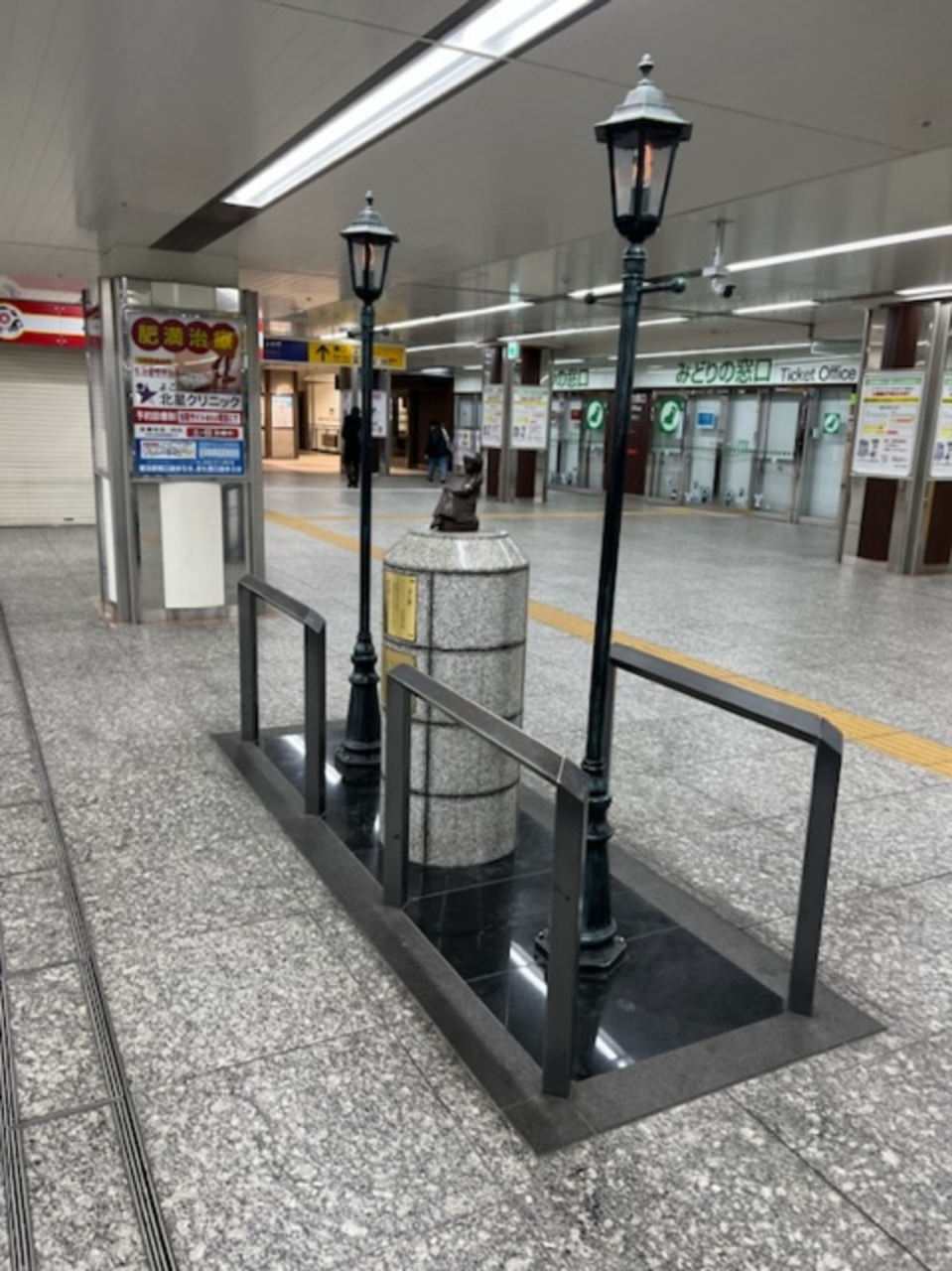 西表島1人旅で京急線で羽田空港に行く際の乗り換えで立ち寄りました。横浜駅のど真ん中にあります。JR線、京急線、東横線、みなとみらい線の改札からは特に近いからイイですよ。モデルになった女の子は養子になるも海外に渡る前に病死してしまったとのことです。
