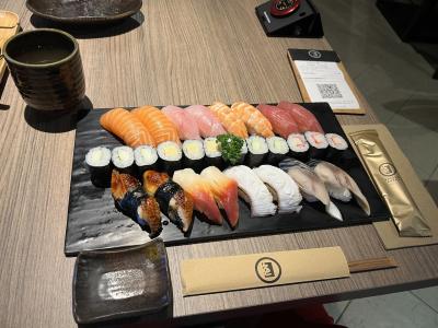 食べたのは寿司の竹セット27ブルネイドルと茶碗蒸しスペシャル5.4ブルネイドル。寿司は16貫に細巻12個、海外で食べる寿司としてはかなり質が高いです。