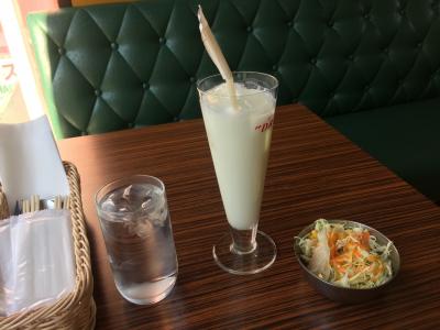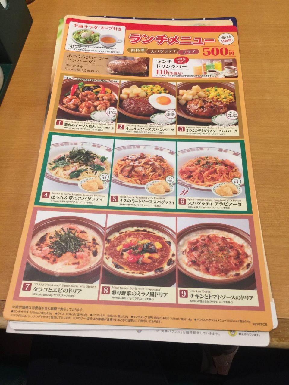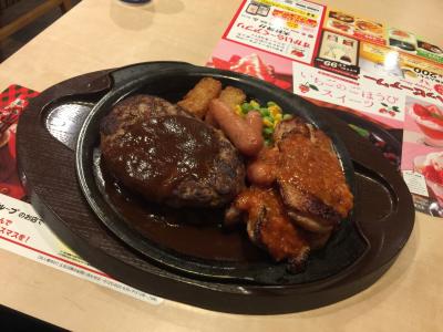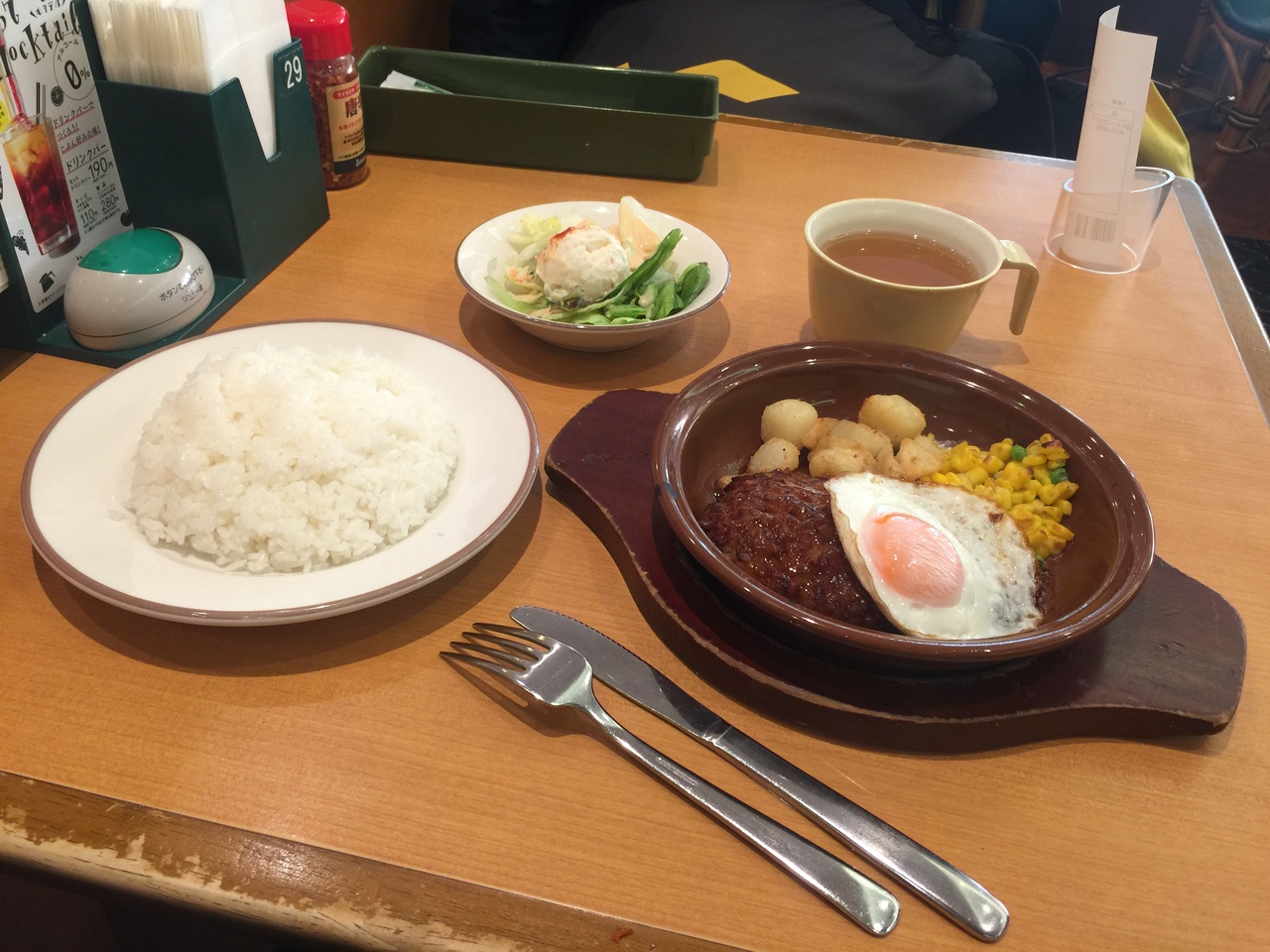 選んだのはオニオンソースのハンバーグランチ!ライスを大盛にしたので30円増しでした。サラダにスープが付いて、安いですね(^ ^)- 旅行時期