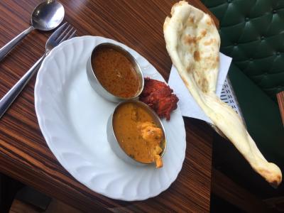 食べたのはカレー2種にタンドリーチキンが付いた1,100円のセット!カレーはマトンとチキンを選びました。なかなか美味しいですよ(^ ^)- 旅行時期