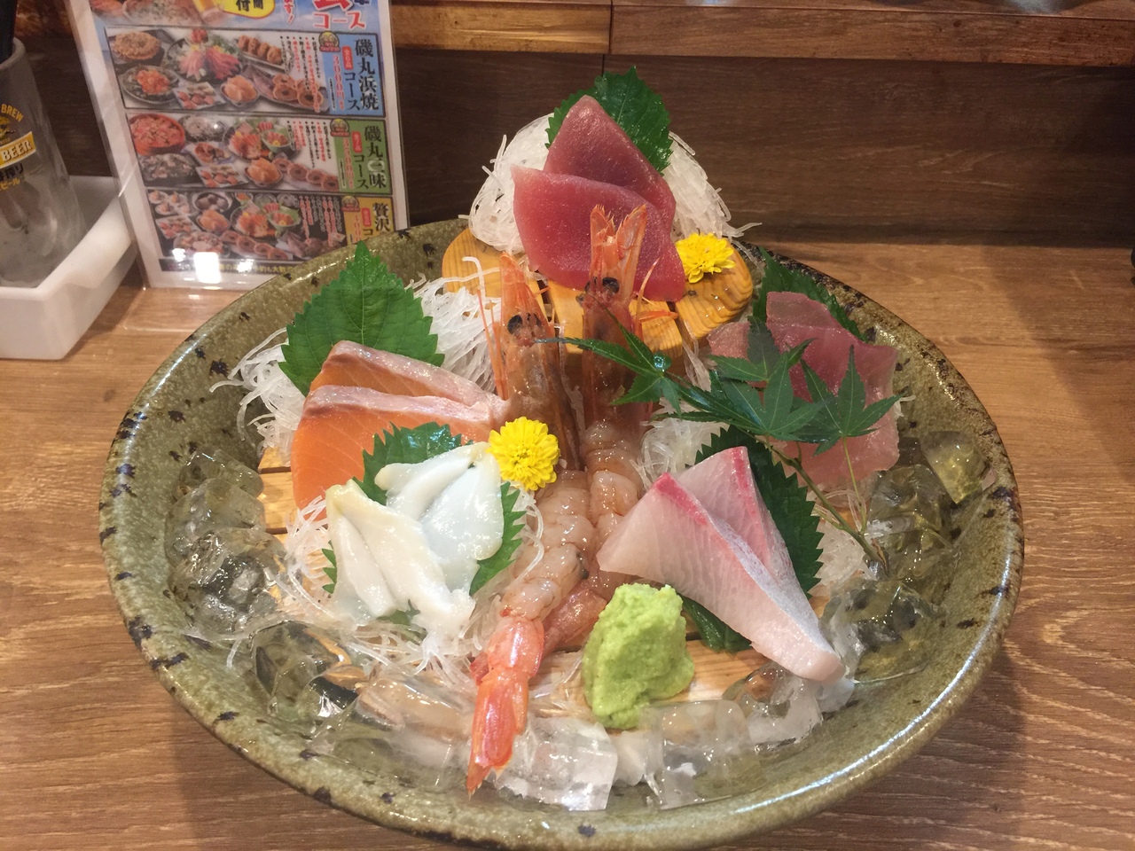 刺身五点盛りの赤海老が好きなんだよな。刺身五点盛りは一点サービスでした。あとは秋刀魚焼!日本酒がすすむ!すすむ(^ ^)- 旅行時期