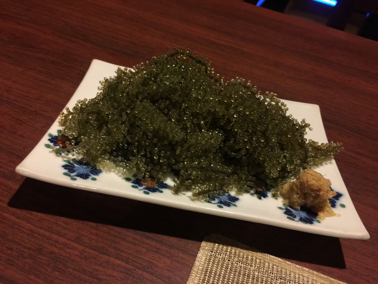たのんだのは海ぶどう、うに刺、カリフォルニアロールスペシャル、キムチ鍋!