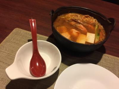 最初にキムチ鍋が出てきました。鍋は最後が良かったんだが、、、
