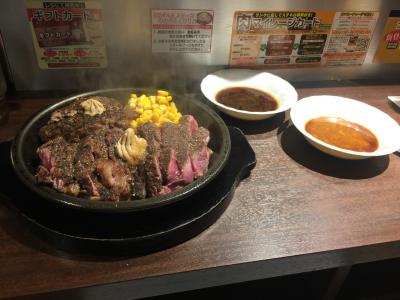 食べたのはワイルドステーキ450gにハーフバーグ150gの肉600g!あっさり食い切りました。
