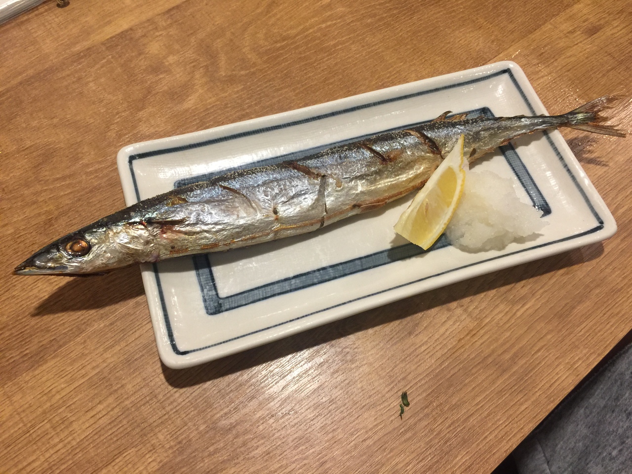 そしてさんま!さんまの塩焼き!磯丸純米酒が進む進む!- 旅行時期