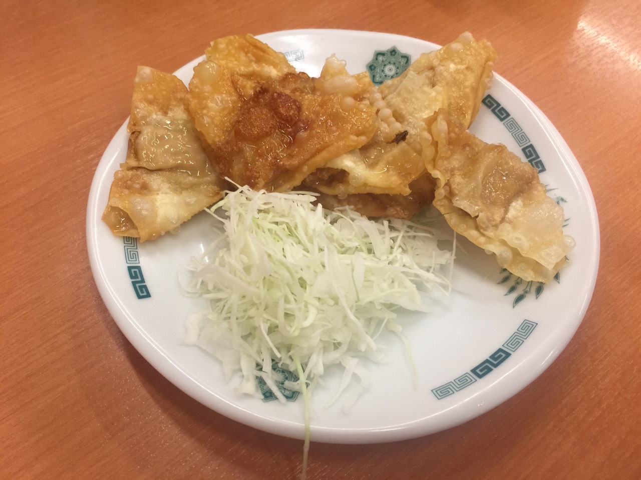 先ずは揚げワンタン!ん~、イマイチかな!?そして餃子にイワシフライ!度数20度のロック酒と一緒に流し込みました(^ ^)- 旅行時期