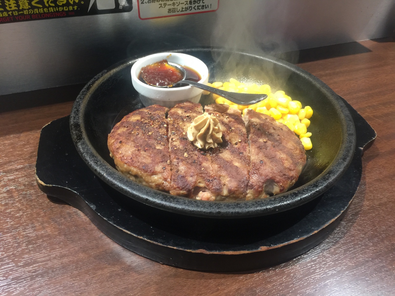 食べたのはリーズナブルにワイルドハンバーグ!ビールはプラチナカードでサービス(^ ^)- 旅行時期