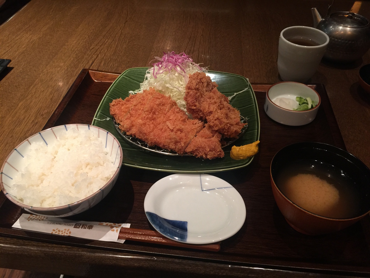食べたのはひれロース盛合せ御飯1,300円税込!小さめのロースカツに一口ヒレカツが2個!キャベツ、味噌汁、ご飯と、、、お替り(^ ^)- 旅行時期