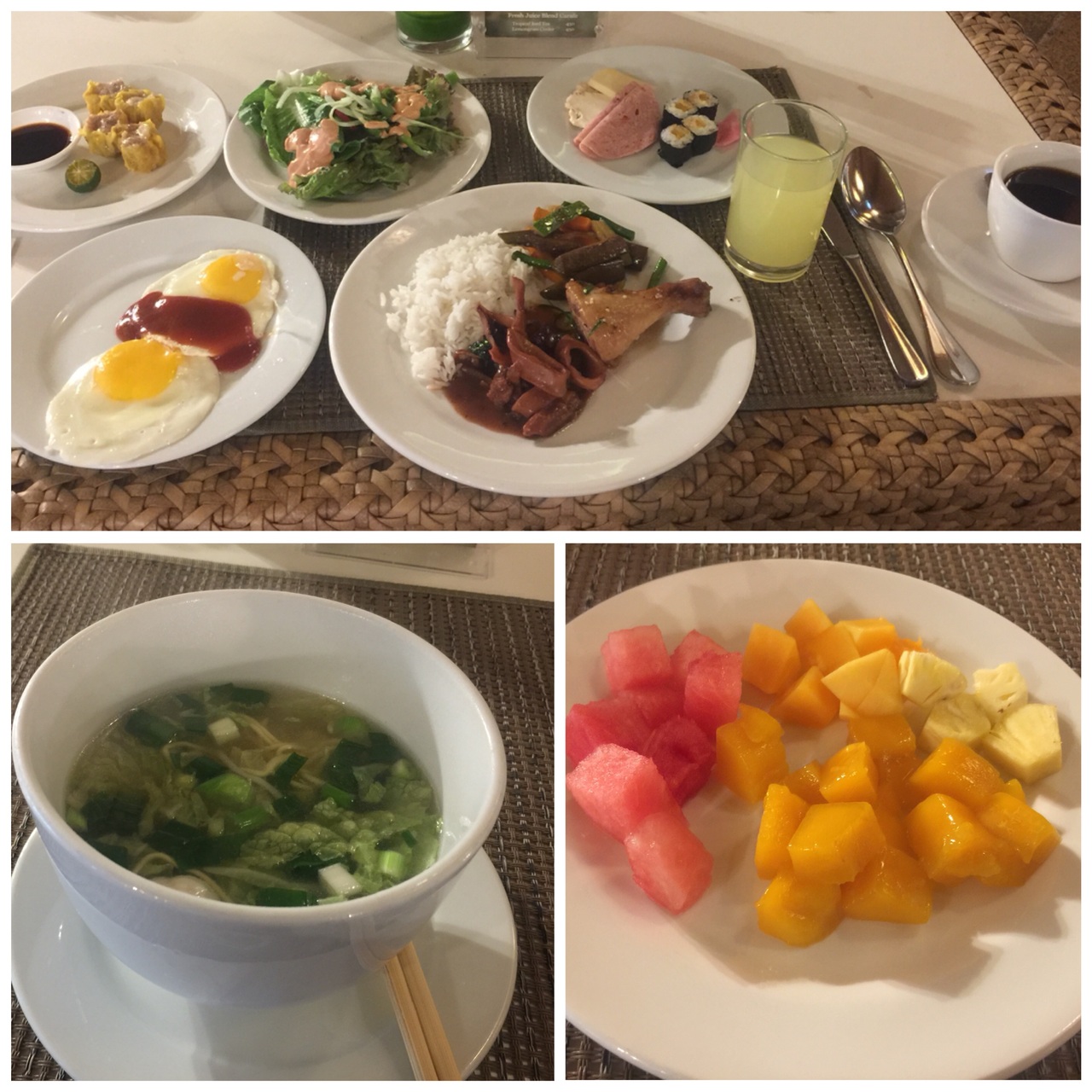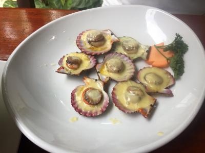 チキンとマンゴーのサラダ、豚のシニガン、ホタテのチーズ焼き、、、どれも美味しいし安いですよ!- 旅行時期