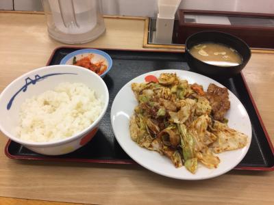 食べたのは回鍋肉定食650円!小鉢はキムチで!なかなか美味しいです(^ ^)- 旅行時期