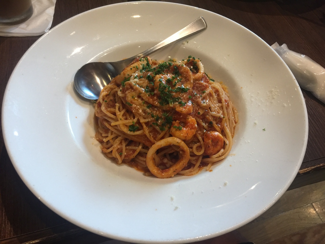 食べたのはシーフードスパゲッティマリナラソース750円を大盛100円増にソフトドリンク150円!なかなか美味しいし、ソフトドリンクはおかわり自由だし、いいね!- 旅行時期