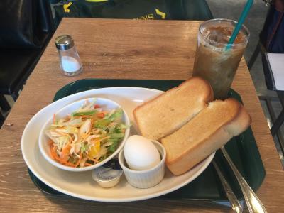 トーストにサラダ、ゆで卵、飲み物!飲み物はアイスコーヒーにしました(^ ^)- 旅行時期