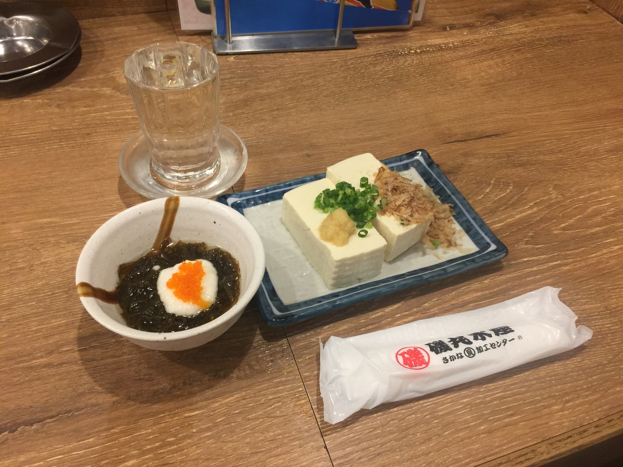先ずは冷奴に磯丸純米酒!美味い(^ ^)