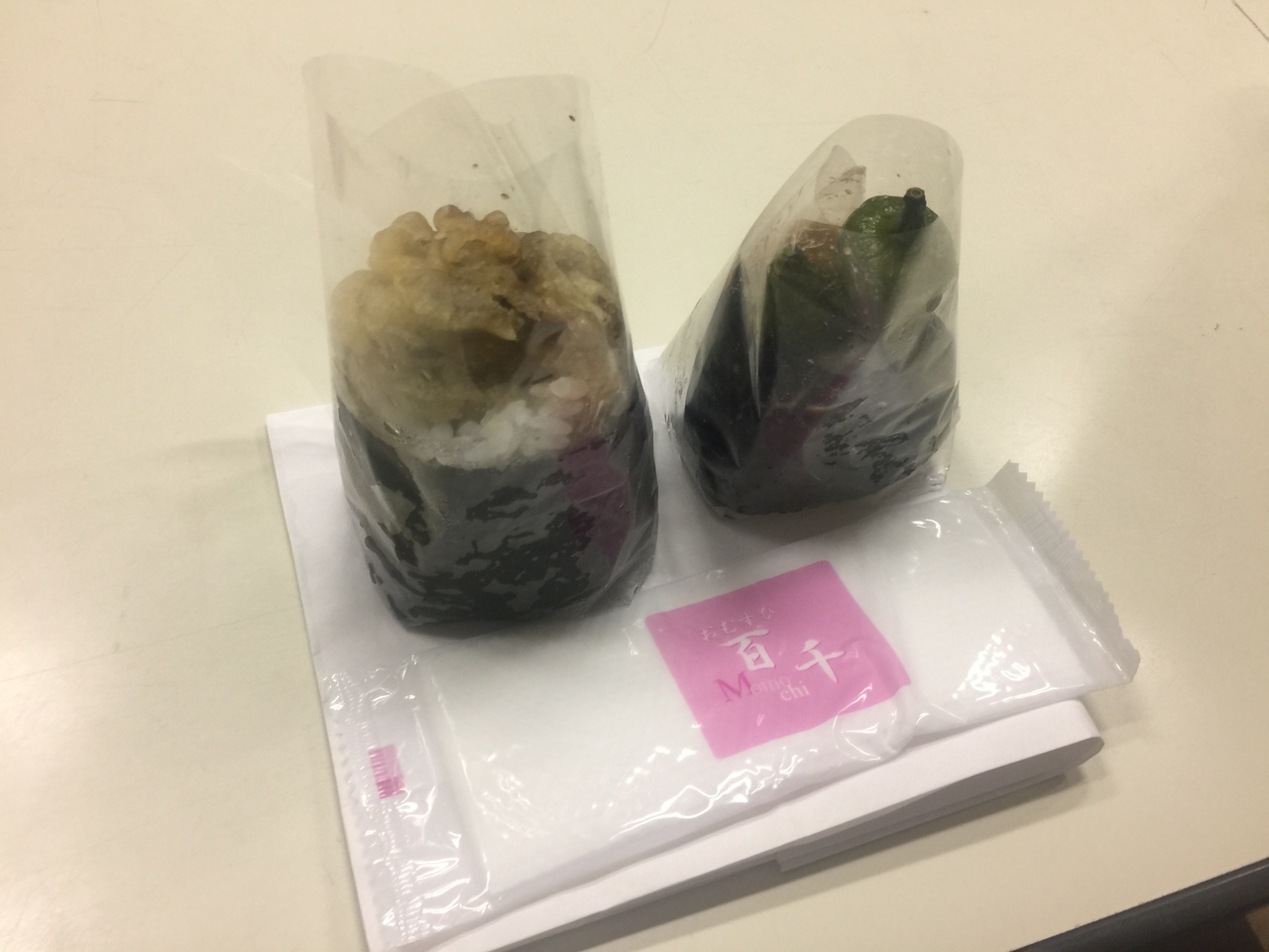 買ったのは万願寺甘とうおむすび290円と舞茸天むす230円!万願寺甘とうおむすび、美味しいじゃないの(^ ^)- 旅行時期