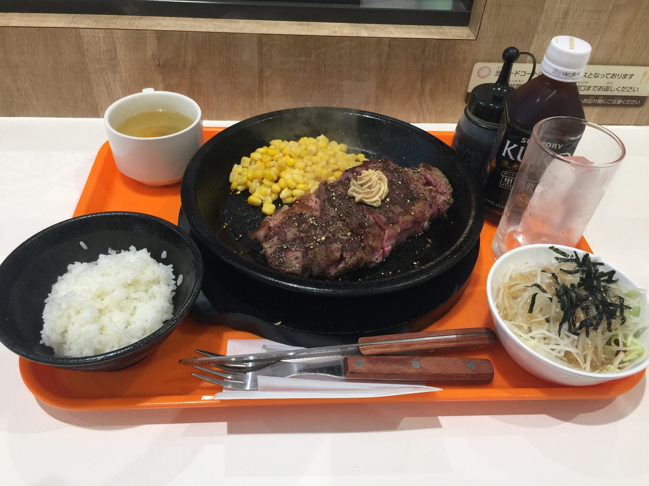 食べたのはワイルドステーキ300g!ランチなのでライス、サラダ、スープが付きます。