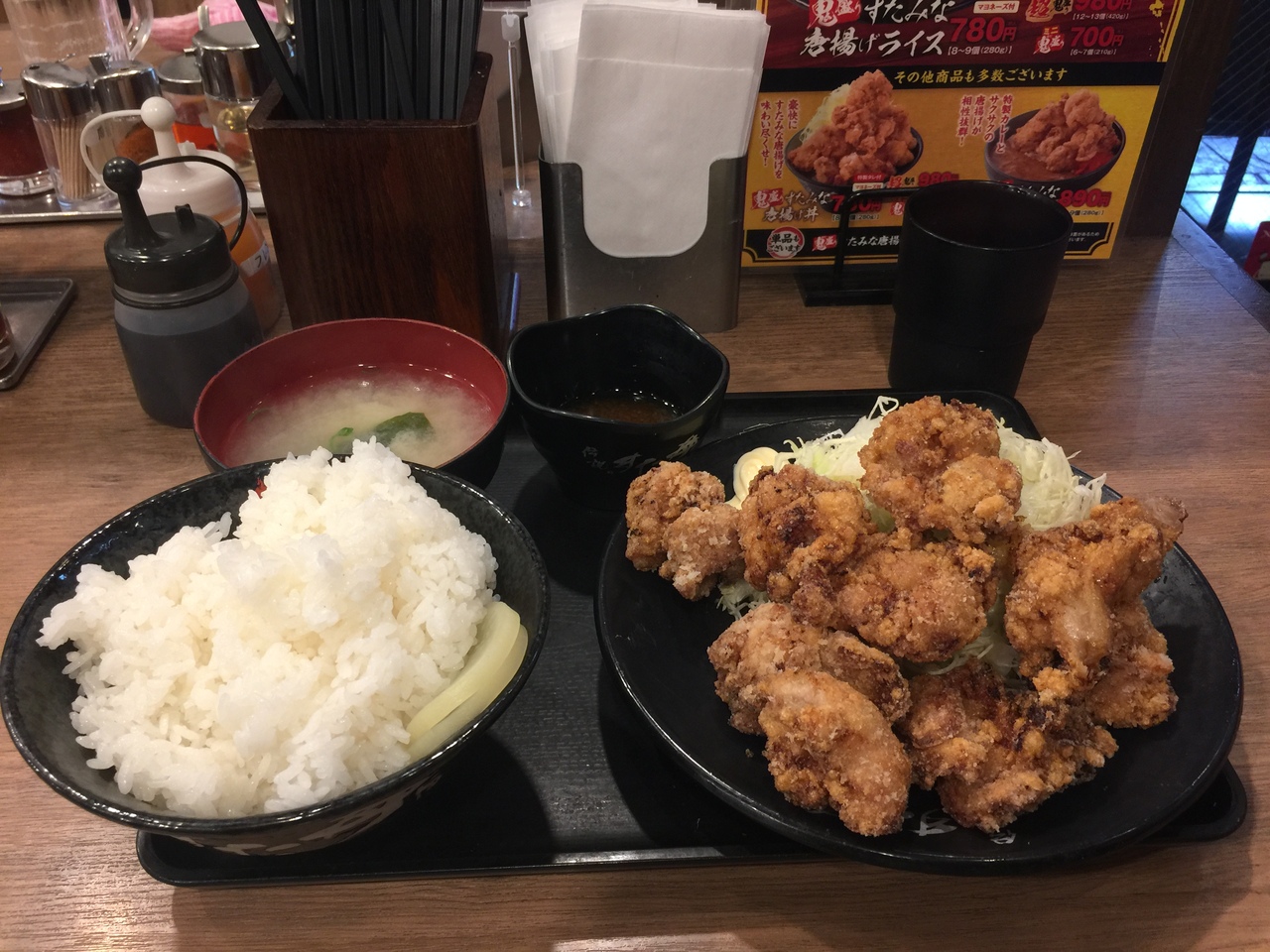 食べたのは鬼盛りすたみな唐揚げライス780円!かなりのボリュームです。唐揚げは280gとなってますね。マヨネーズ付きでポン酢だれでいただきました(^ ^)- 旅行時期