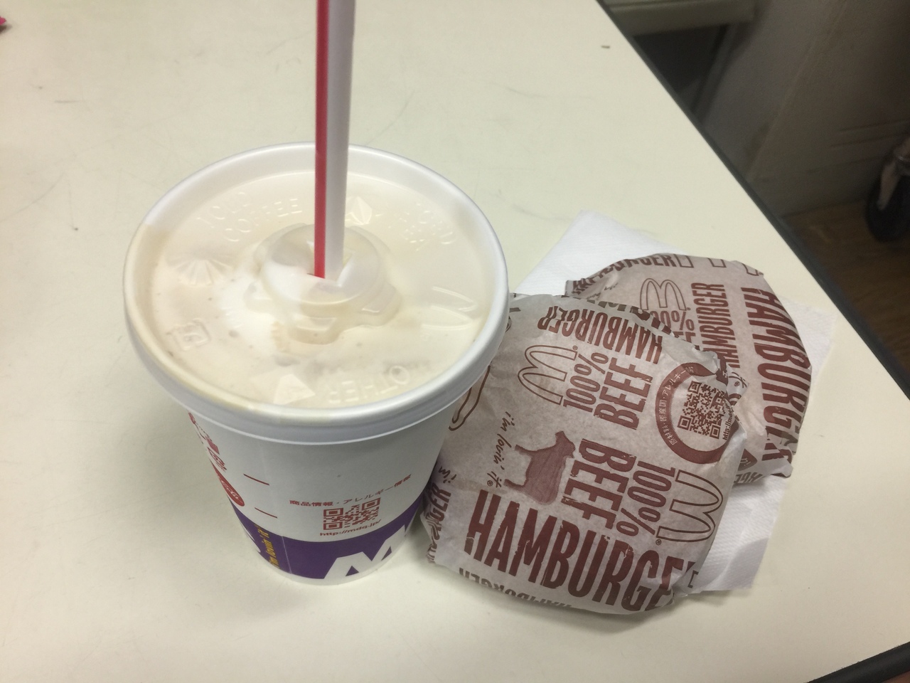 ハンバーガー2個と期間限定のカフェオレのマックシェイクを買いました。全部で400円でした!- 旅行時期