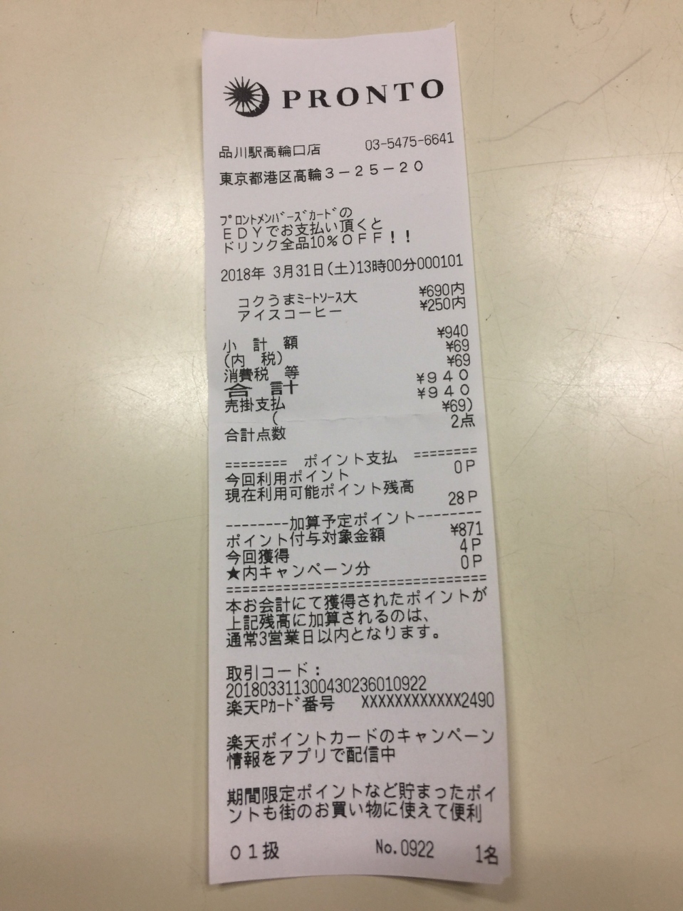 品川駅高輪口から歩いてすぐのところにあるプロントです。