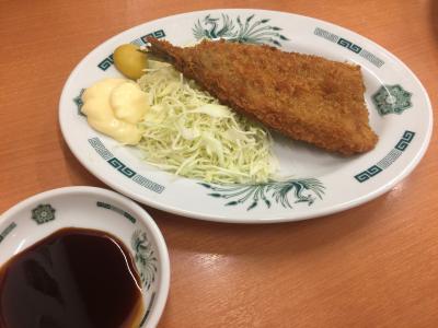 餃子にいわしフライ!いつもこれですね(^ ^)