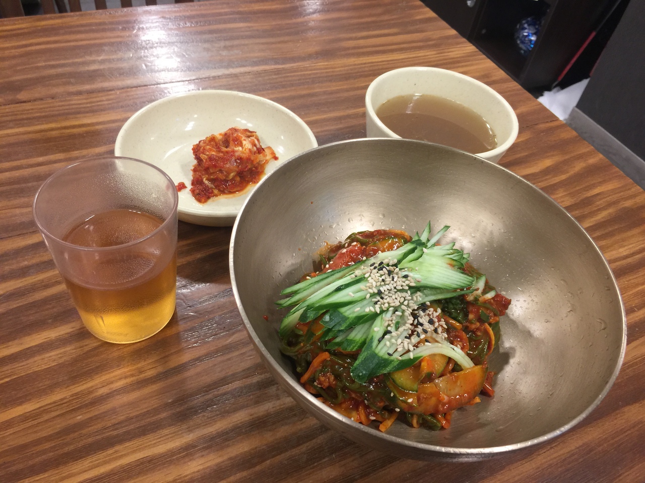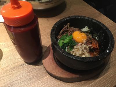 食べたのは石焼ビビンパと韓国冷麺のセット!ナイスな組み合わせです。飲み物はマンゴージュース!