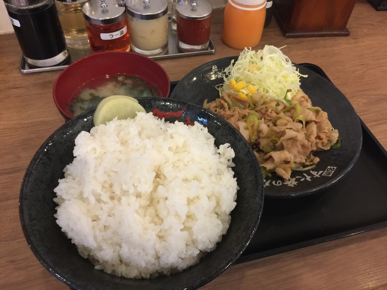 食べたのは生姜ライス!スタンプカードのスタンプが5つ貯まったので餃子のサービスをもらうから飯増しで、、、