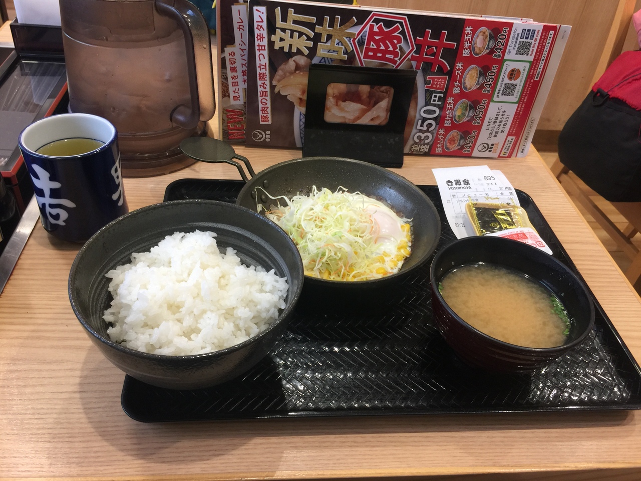 吉野家でハムエッグ定食を食べたんですが汁物が欲しくて寄りました。