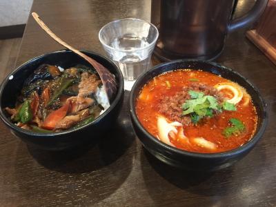 担々刀削麺と豚肉茄子丼のセットにしました。