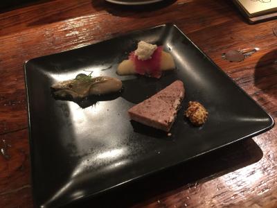 飲み物は赤ワイン(テンプラリーニョ)、前菜、オマール海老のスパゲッティにしました。