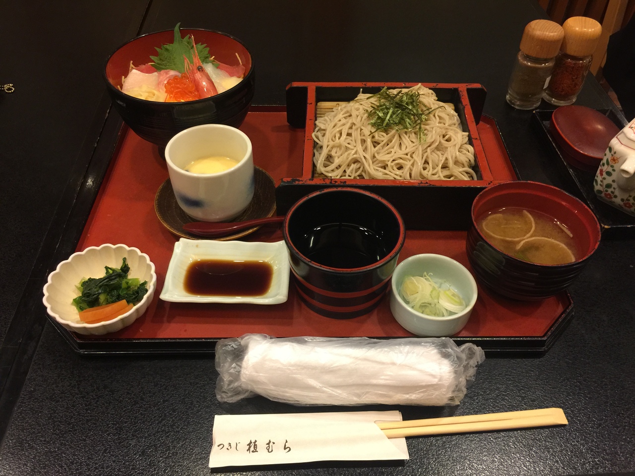 かつ丼とまよいましたが、、、食べたのは海鮮丼とお蕎麦のセットランチ1,180円!お蕎麦は冷たいせいろにしました。