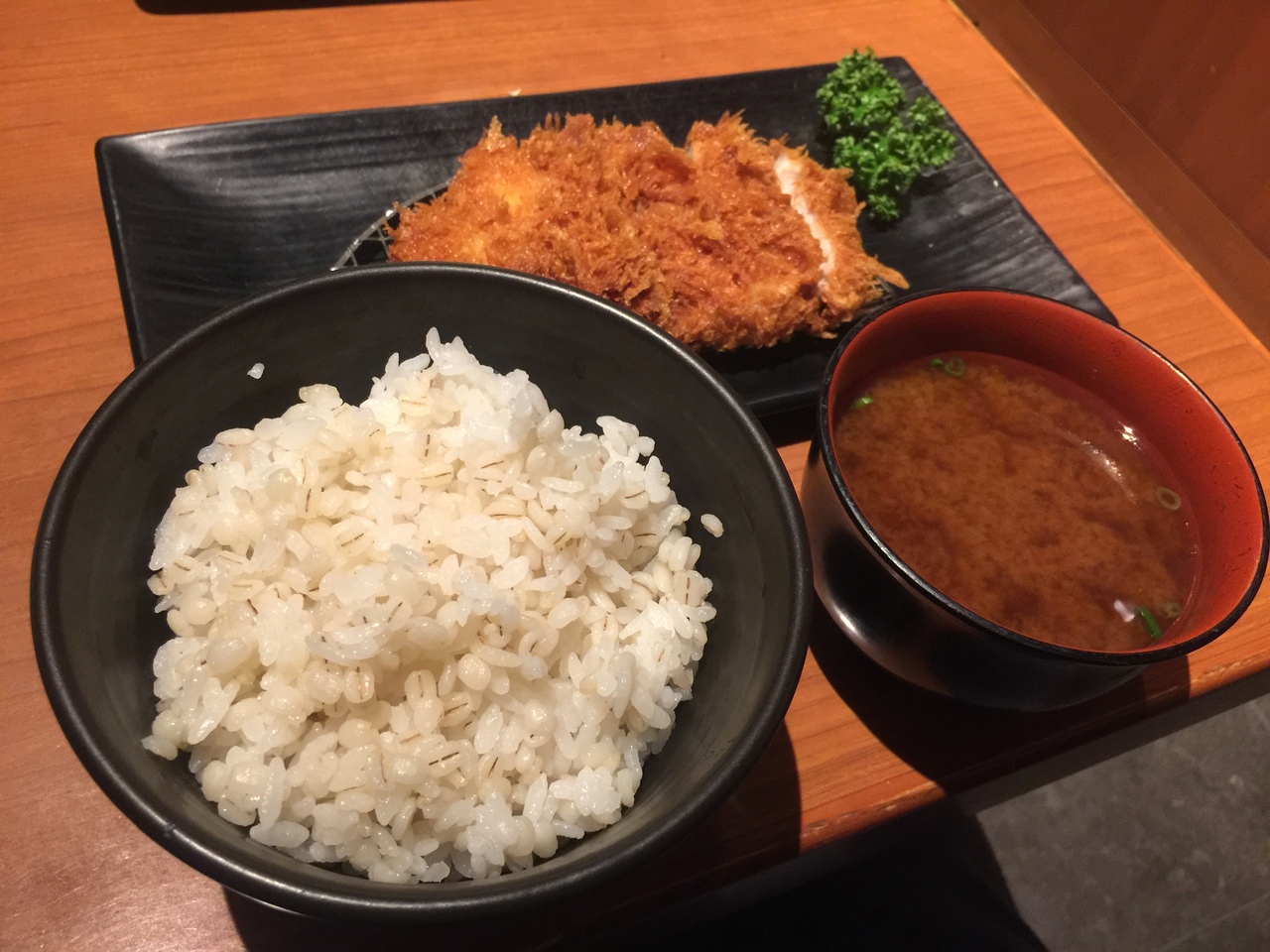 キャベツ、味噌汁、ご飯はおかわり自由です。ご飯は白米か麦ご飯が選べます。