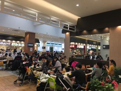 ランチタイムにフードコートに来ましたが大混雑で席がありません。小さな子供連れの主婦ばかりです。