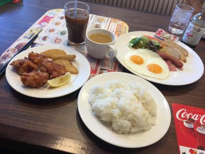 食べたのは目玉焼きモーニングセットに鶏唐揚げを付けました。ライス大盛で!大盛はサービスです。